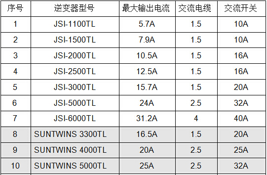 附錄:并網逆變器交流輸出電纜和交流輸出斷路器的選型表yFb山東宏昇機械科技有限公司